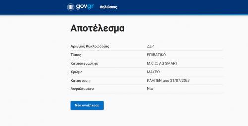 Στην περίπτωση που ένα όχημα είναι κλεμμένο και η κλοπή έχει δηλωθεί από τον ιδιοκτήτη του στις αρμόδιες αρχές, τότε στο πεδίο «Κατάσταση» εμφανίζεται η ένδειξη «ΚΛΑΠΕΝ» και η ημερομηνία στην οποίο ο ιδιοκτήτης του αυτοκινήτου προχώρησε στη δήλωση της κλοπής.