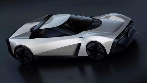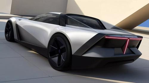 Στην αγωνιστική πρόταση ξεχωρίζουν οι πιο επιθετικοί προφυλακτήρες, οι χρυσοί τροχοί, η «ducktail» πτέρυγα και οι αεραγωγοί που αποπνέουν καθαρό αγωνιστικό DNA. Αν και ο σχεδιαστής δεν ξεκαθαρίζει τι θα υπήρχε κάτω από το καπό, η σιλουέτα αφήνει χώρο για μια ηλεκτρική διάταξη - με μπαταρίες και μοτέρ τοποθετημένα χαμηλά.