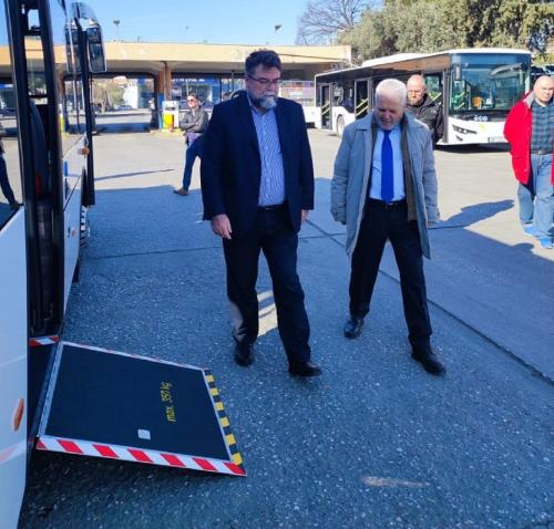 Κατά τη διάρκεια της επίσκεψης, επιθεώρησε 26 ολοκαίνουρια λεωφορεία τα οποία θα τεθούν σε κυκλοφορία έως το τέλος Μαρτίου. Πρόκειται για δεκάμετρα πετρελαιοκίνητα λεωφορεία, που θα ενισχύσουν σημαντικά τις δημόσιες συγκοινωνίες της πόλης.