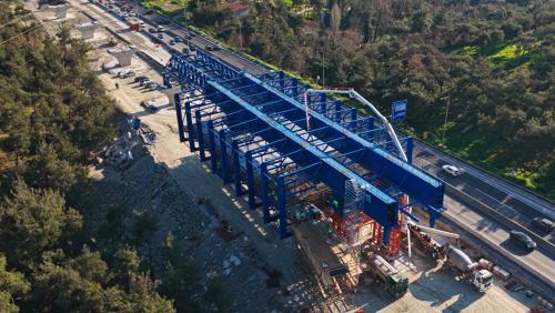 Παράλληλα προχωρούν οι εργασίες στα βασικά τεχνικά στοιχεία της υπερυψωμένης λεωφόρου, με την ανάπτυξη μεγάλων καλουπιών σκυροδέτησης πάνω στα βάθρα του έργου. Τα ειδικά αυτά καλούπια χρησιμοποιούνται για τη σταδιακή κατασκευή των τμημάτων της υπερυψωμένης διαδρομής, ενώ σε αρκετά σημεία έχουν ήδη ολοκληρωθεί σκυροδετήσεις και προχωρούν τα επόμενα στάδια της κατασκευής.