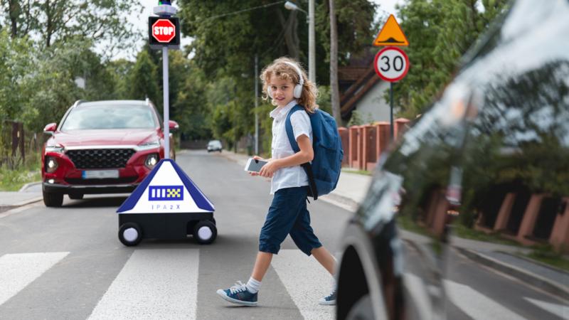 Το ρομπότ, που ονομάζεται Ipa2x, είναι σε θέση να τοποθετείται στη μέση του δρόμου, να σηματοδοτεί στα αυτοκίνητα να σταματήσουν, και έπειτα να υποδεικνύει στους πεζούς πότε είναι ασφαλές να διασχίσουν τη διάβαση. Οι πρώτες του, πειραματικές δοκιμές έγιναν στο σχολείο Arcadia της περιοχής Gratosoglio, του Μιλάνου της Ιταλίας.