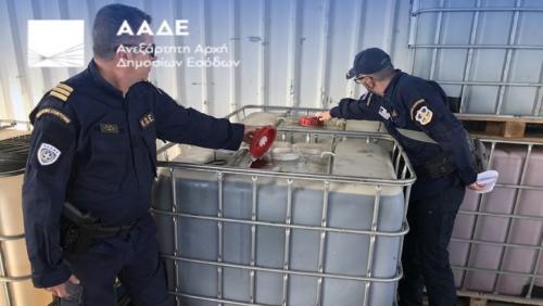 Οι ελεγκτές βρήκαν, στην πίσω πλευρά της εγκατάστασης, βυτιοφόρο, την ώρα, που εκφόρτωνε πετρέλαιο ναυτιλίας σε πλαστική δεξαμενή, για την οποία το πρατήριο δεν διέθετε άδεια, ούτε είχε συνδεθεί με το σύστημα εισροών – εκροών.