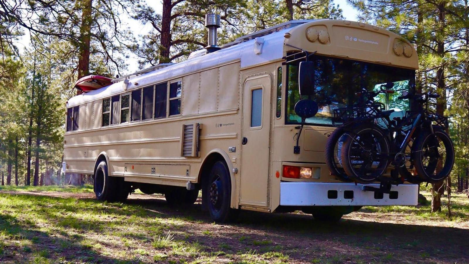 Απ’ έξω μοιάζει όπως ένα οποιοδήποτε κίτρινο αμερικάνικο σχολικό, αλλά μόλις ανοίξει κανείς την πόρτα και εισέλθει στο εσωτερικό, αντικρίζει μια εντελώς διαφορετική κατάσταση, αντί για τις αναμενόμενες σειρές των καθισμάτων για τα παιδιά. Το πάτωμα αποτελείται από πέτρα και ξύλο, ενώ το μάτι δεν γίνεται να μην πέσει πάνω σε μια πλήρως εξοπλισμένη κουζίνα, αλλά και στα δύο σκυλιά που απολαμβάνουν τη θαλπωρή του χώρου.