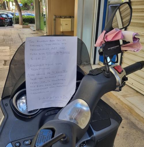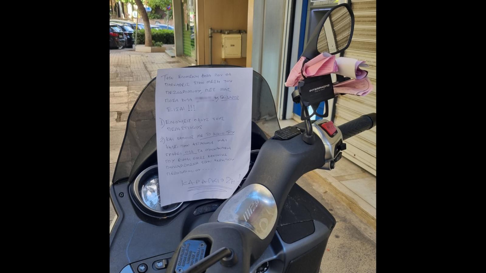 Το σημείωμα που έγινε viral και δώρο οι κλήσεις –Οργισμένο μήνυμα σε οδηγό scooter που πάρκαρε στη μέση του πεζοδρομίου