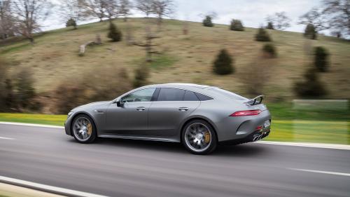 Η διάδοχος της AMG GT 4-Door φορούσε κάρμπον-κεραμικά φρένα, με μεγάλες δαγκάνες, κρυμμένες πίσω από τεράστιες ζάντες αλουμινίου 21 ιντσών.