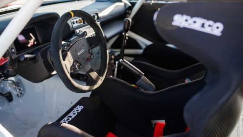 Στο εσωτερικό, το πρωτότυπο αυτό είναι εξοπλισμένο με αγωνιστικό κλωβό ασφαλείας (roll cage), αγωνιστικά καθίσματα Sparco και ζώνες ασφαλείας έξι σημείων, ενώ ο χώρος αποσκευών φιλοξενεί ένα μικρό κιτ εργαλείων και ρεζέρβα πλήρους μεγέθους. Όπως σε ένα πραγματικό αγωνιστικό, έχει αφαιρεθεί όλη η ηχομόνωση για ελαχιστοποίηση του βάρους.