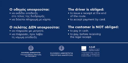 Με επιστολή του ο Διοικητής της ΑΑΔΕ, Γιώργος Πιτσιλής, κάλεσε την Πανελλήνια Ομοσπονδία Ταξί να παραλάβει και να παραδώσει στους αυτοκινητιστές αυτοκόλλητες ταμπέλες, που παρήχθησαν με έξοδα της Αρχής και ενημερώνουν τους επιβαίνοντες για την υποχρέωση των οδηγών να εκδίδουν απόδειξη και να δέχονται πληρωμές με κάρτα.