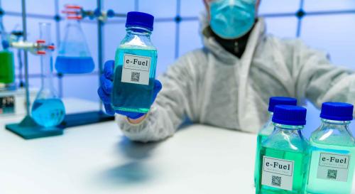 Όπως χαρακτηριστικά ανέφερε η κ. Αλεξοπούλου: «Μια ακόμη επιλογή για το μέλλον που ανοίγεται με την παραγωγή πράσινου υδρογόνου είναι τα συνθετικά καύσιμα που δεν βασίζονται σε ορυκτό άνθρακα. Βασίζονται σε άνθρακα που υπάρχει ήδη στο περιβάλλον σε μορφή διοξειδίου, μέσω του οποίου σε συνδυασμό με το πράσινο υδρογόνο, συντίθεται η ανθρακική αλυσίδα και παίρνουμε καύσιμα πανομοιότυπα με τη βενζίνη, το ντίζελ ή την κηροζίνη, τα οποία όμως δεν βασίζονται σε ορυκτό άνθρακα. Με καθοριστική διαφορά ότι τα καύσιμα αυτά δεν έχουν ανθρακικό αποτύπωμα. Πιθανόν αυτή να είναι η λύση για τα εκατομμύρια οχημάτων με θερμικό κινητήρα που κυκλοφορούν σήμερα στη χώρα μας».
