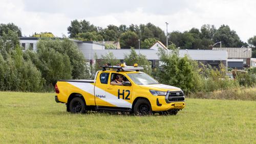 Ένα πρωτότυπο Toyota Hilux με κυψέλες καυσίμου υδρογόνου υποστηρίζει πλέον τις ομάδες εδάφους στο αεροδρόμιο Schiphol της ολλανδικής πρωτεύουσας - που έγινε έτσι το πρώτο στο κόσμο που εντάσσει στην καθημερινότητά του οχήματα υδρογόνου.