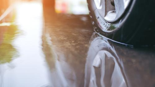Επίσης, αποφεύγουμε τα σημεία όπου έχει συγκεντρωθεί νερό και οδηγούμε σε τμήματα του δρόμου τα οποία έχουν «στεγνώσει» από τα ελαστικά των προπορευόμενων οχημάτων.