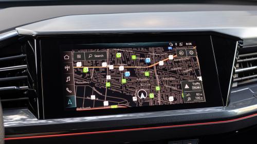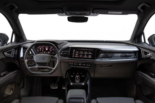 Η νέα εποχή της Audi είναι έντονα παρούσα και στο εσωτερικό του Q4 e-tron, όπου τα κορυφαίας ποιότητας υλικά συναντώνται με το προχωρημένο design για τη δημιουργία μιας πολυτελούς καμπίνας, με έντονα τα σπορ στοιχεία που χαρακτηρίζουν τις προτάσεις των Γερμανών. Η οδηγοκεντρική σχεδίαση του μοντέρνου ταμπλό φέρνει την κεντρικά τοποθετημένη οθόνη αφής του προηγμένου συστήματος πολυμέσων MMI να «κοιτάζει» ελαφρά προς τον οδηγό, ο οποίος έχει μπροστά του έναν πλήρως ψηφιακό πίνακα πληροφοριών 10,25 ιντσών.