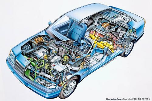 Επιπλέον, το δοχείο καυσίμων μεταφέρθηκε για πρώτη φορά κάτω από το πίσω κάθισμα (από το πορτ-μπαγκάζ, που βρισκόταν στην 190Ε) απελευθερώνοντας χώρο για τη διαμήκη μετακίνηση του πίσω καθίσματος προς τα πίσω. Ήταν, παράλληλα, το πρώτο πλαστικό ρεζερβουάρ βενζίνης, για τη μείωση του βάρους.